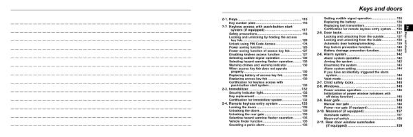 2-3 . Immobilizer ...................................................... 132 Security indicator light ........................................ 132 Key replacement ................................................. 132 Certification for immobilizer system .................... 132