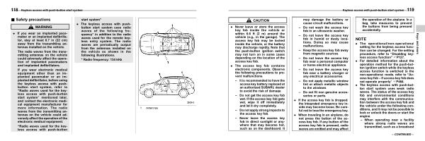 . The operational / non-operational setting for the keyless access function can be changed . For the setting procedure , refer to “ Disabling keyless access function ” FP127 .