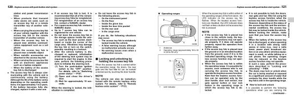 . If an access key fob is lost , it is recommended that all of the remaining access key fobs be reregistered . For reregistration of an access key fob , contact a SUBARU dealer .