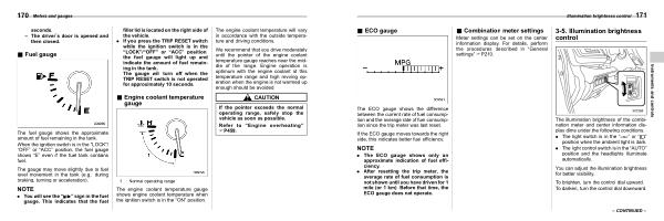 The engine coolant temperature gauge shows engine coolant temperature when the ignition switch is in the “ ON ” position .