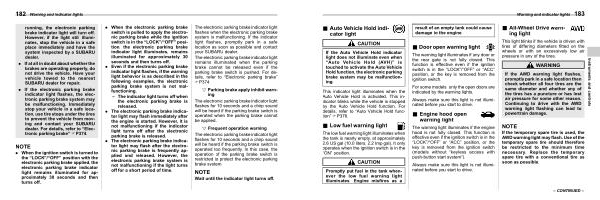 . If the electronic parking brake indicator light flashes , the electronic parking brake system may be malfunctioning . Immediately stop your vehicle in a safe location , use tire stops under the tires to prevent the vehicle from moving and contact your SUBARU dealer . For details , refer to “ Electronic parking brake ” FP374 .