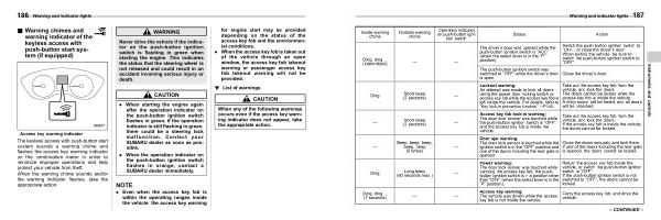 & Warning chimes and warning indicator of the keyless access with push-button start system ( if equipped )