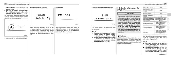 The audio screen shows the status of audio information . For details about the audio system , refer to the separate navigation / audio Owner ’ s Manual .