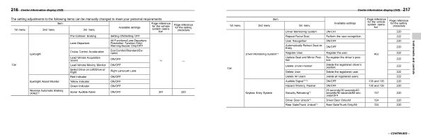 The setting adjustments to the following items can be manually changed to meet your personal requirements . | ||||||