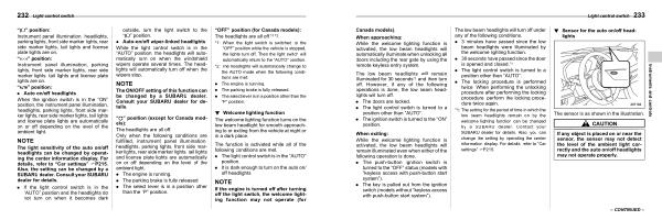 * 1 : The setting for the period of time in which the low beam headlights remain on by the welcome lighting function can be changed by a SUBARU dealer . Contact your SUBARU dealer for details . Also , you can change the setting by operating the center information display . For details , refer to “ Car settings ” FP215 .