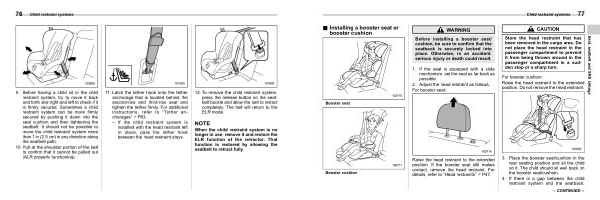 9 . Before having a child sit in the child restraint system , try to move it back and forth and right and left to check if it is firmly secured . Sometimes a child restraint system can be more firmly secured by pushing it down into the seat cushion and then tightening the seatbelt . It should not be possible to move the child restraint system more than 1 in ( 2.5 cm ) in any direction along the seatbelt path .