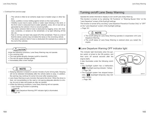 • Under the following conditions , Lane Sway Warning will not operate . - Lane Centering Function is operating .