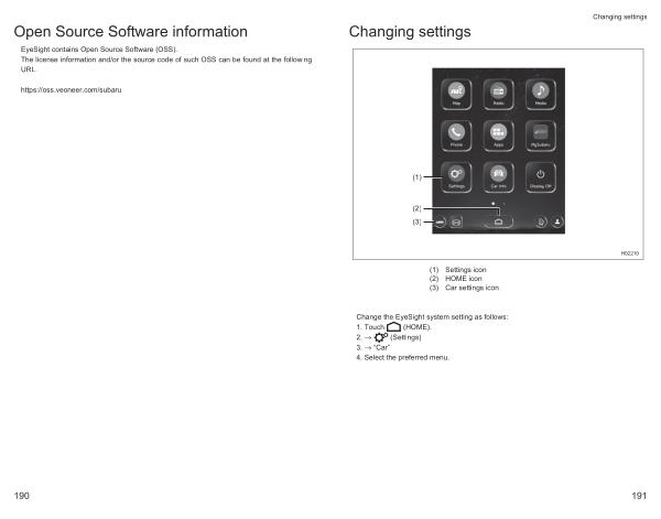 EyeSight contains Open Source Software ( OSS ). The license information and / or the source code of such OSS can be found at the following URL .