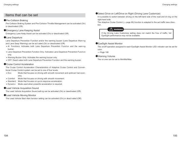 ●Lane Departure Lane Departure Prevention Function and / or the warning buzzer ( Lane Departure Warning and Lane Sway Warning ) can be activated ( On ) or deactivated ( Off ).