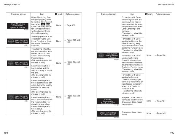Driver Monitoring System ( if equipped ) starts to monitor driver ’ s condition , when / ( Lane Centering indicator ) ( white ) illuminates while Adaptive Cruise Control is operating .