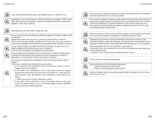 Is the inside or outside of the windshield in front of the stereo camera dirty or fogged ? In this case , EyeSight may temporarily stop operating .