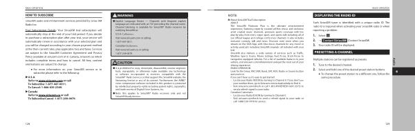 � About SiriusXM Trial Subscription ABOUT The SiriusXM Platinum Plan is the ultimate entertainment experience , featuring expertly curated ad-free music and exclusive artist created music channels , premium sports coverage with live play-by-play from every major sport , and sports talk including all of our official league and college conference channels . It also includes exclusive comedy , talk and news . Discover even more when you stream on the SXM App , with Xtra music channels for any mood or activity , podcasts including SiriusXM originals , all included with your trial . SiriusXM also delivers a wide variety of services such as Traffic , Weather , Sports Scores , Movie Listings , Fuel Prices , Stock Prices to navigation equipped vehicles . For a list of available features in your vehicle , visit siriusxm . com / infotainment and get the most out of your driving experience . RADIO OPERATION Look for the Sirius , XM , SXM , Band , SAT , AUX , Radio or Source button and you ’ re in . If you can ’ t hear us , it ’ s easy to get started : �� Locate your Radio ID / ESN by turning to Channel 0 . If you don ’ t see your number there , go to Siriusxm . com / activationhelp to find it . �� Visit siriusxm . com / refresh or call 1-855-MYREFRESH ( 697-3373 ) to send a refresh signal to your radio . Canadian Customers : �� Locate your Radio ID / ESN by turning to Channel 0 . �� Visit siriusxm . ca / refresh to send a refresh signal to your radio or call 1-888-539-7474 for service .