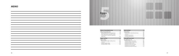 Before Using Applications � ••••••••••••••••••••••••••• 98 Settings Required To Use Applications � ••••••••••••• 99 About App-based Connected Content � •••••••••••• 99 Communication Standards Regarding