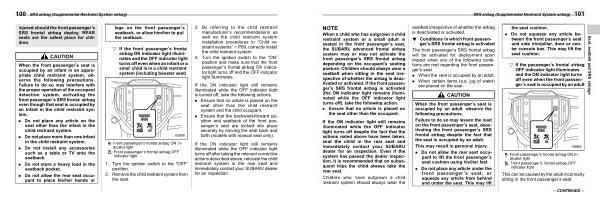 If the ON indicator light still remains illuminated while the OFF indicator light turns off after taking the relevant corrective actions described above , relocate the child restraint system to the rear seat and immediately contact your SUBARU dealer for an inspection .