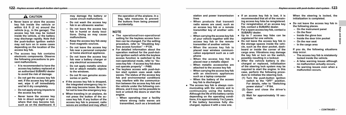 . For a spare access key fob, contact a SUBARU dealer.