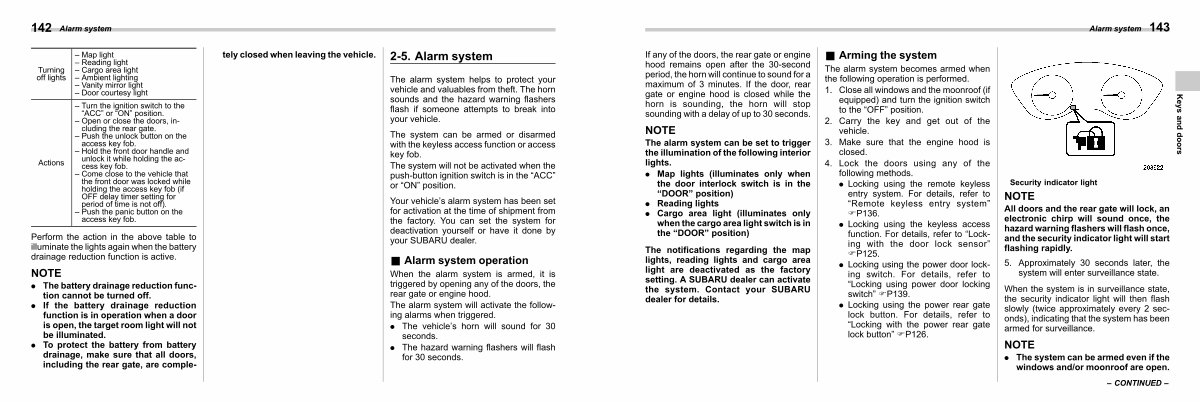 Your vehicle’ s alarm system has been set for activation at the time of shipment from the factory. You can set the system for deactivation yourself or have it done by your SUBARU dealer.