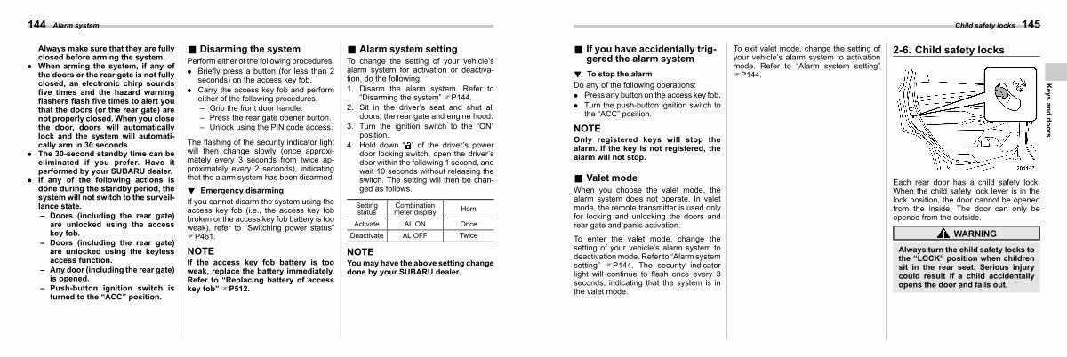 . If any of the following actions is done during the standby period, the system will not switch to the surveillance state. – Doors( including the rear gate) are unlocked using the access key fob.