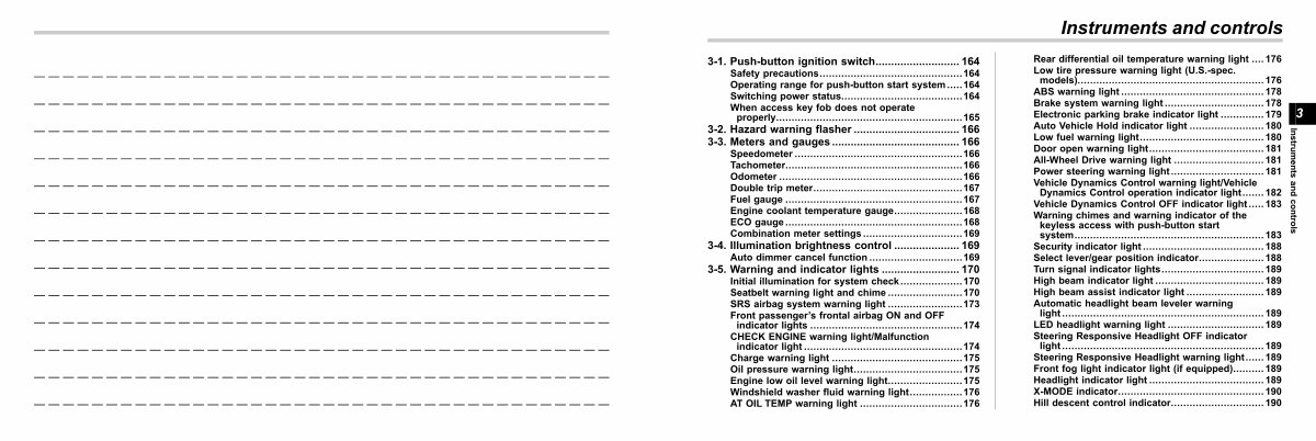 Steering Responsive Headlight warning light...... 189 Front fog light indicator light( if equipped).......... 189 Headlight indicator light..................................... 189 X-MODE indicator............................................... 190 Hill descent control indicator.............................. 190