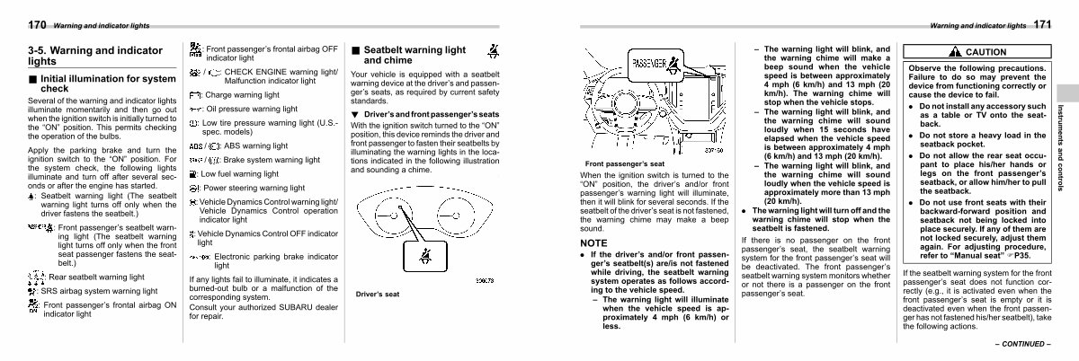 3-5. Warning and indicator lights