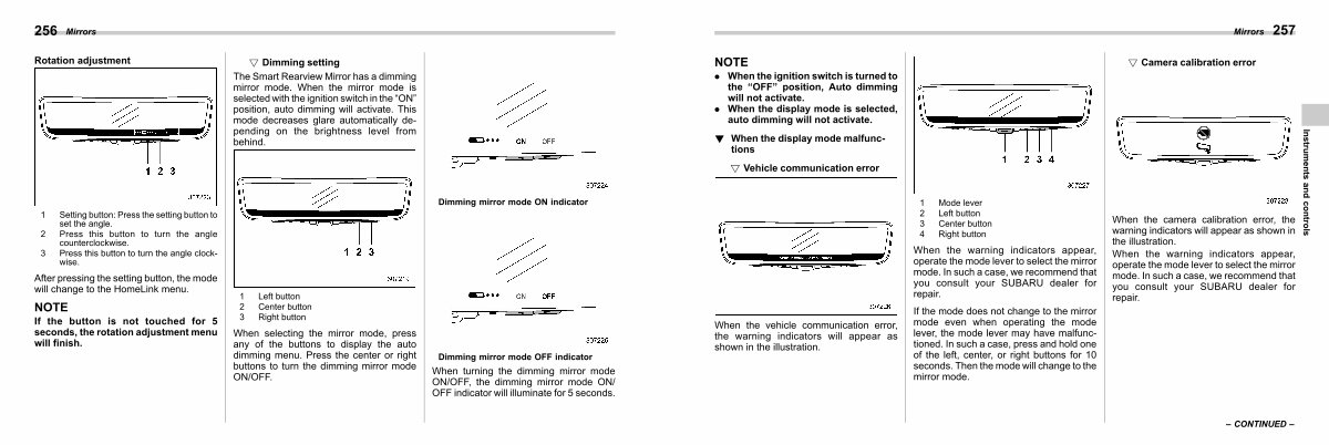 When the warning indicators appear, operate the mode lever to select the mirror mode. In such a case, we recommend that you consult your SUBARU dealer for repair.