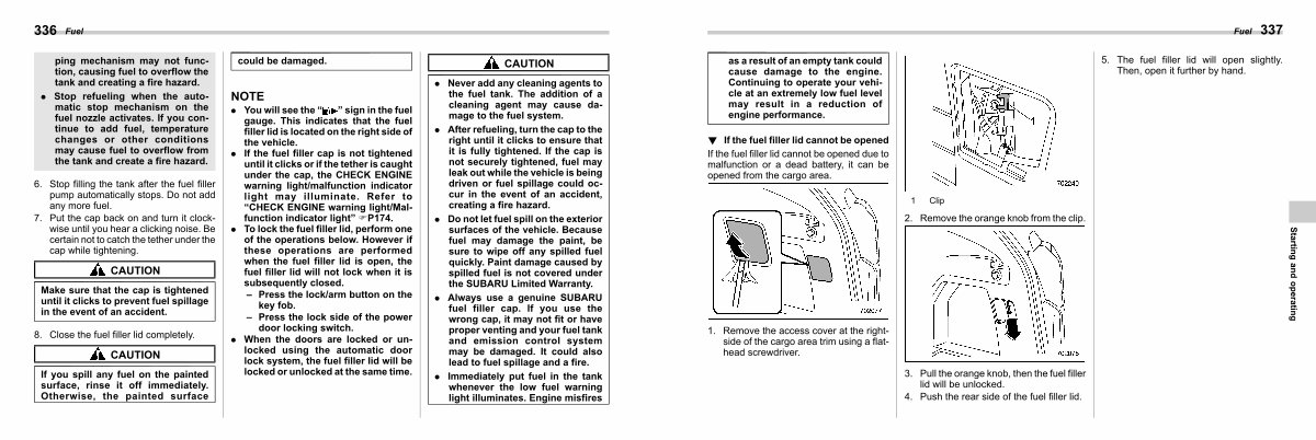 If the fuel filler lid cannot be opened due to malfunction or a dead battery, it can be opened from the cargo area.