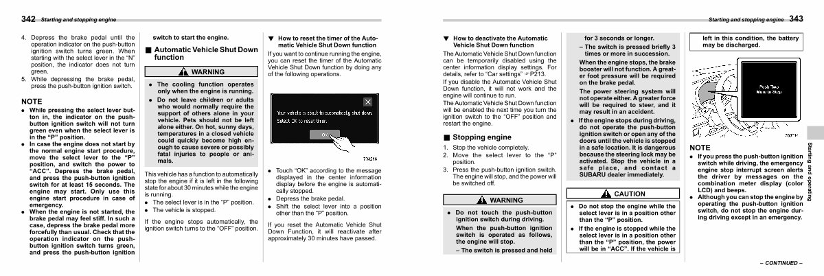If you want to continue running the engine, you can reset the timer of the Automatic Vehicle Shut Down function by doing any of the following operations.