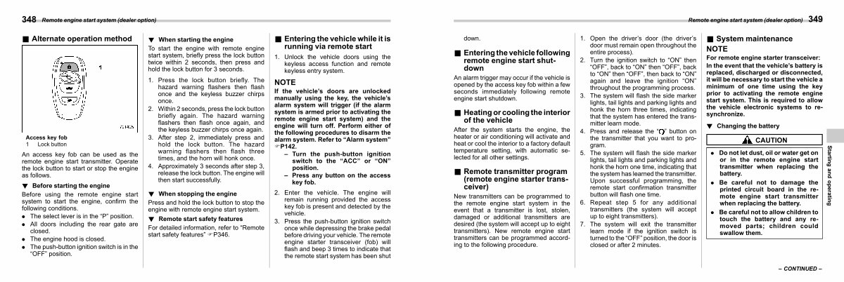 An alarm trigger may occur if the vehicle is opened by the access key fob within a few seconds immediately following remote engine start shutdown.