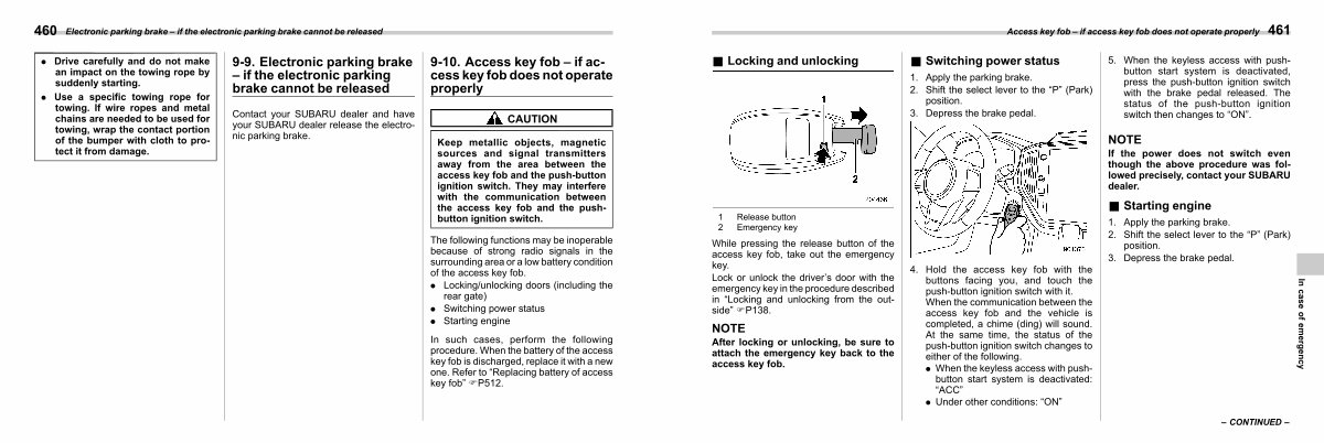 9-10. Access key fob – if access key fob does not operate properly