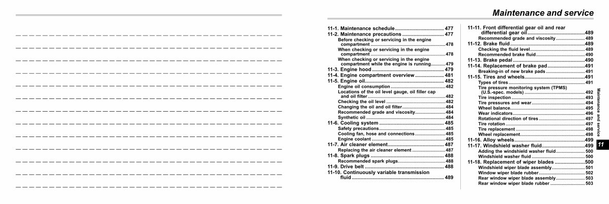 11-1. Maintenance schedule.................................. 477
