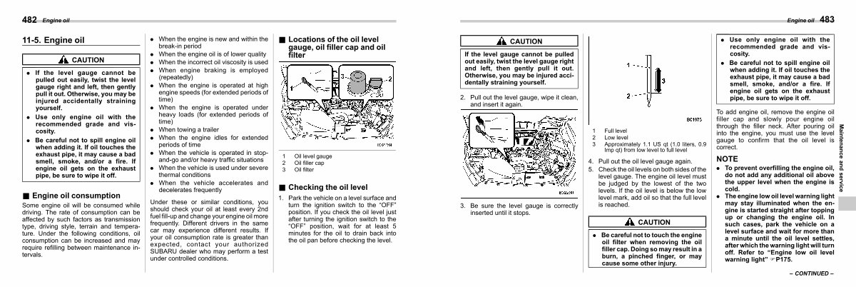 . To prevent overfilling the engine oil, do not add any additional oil above the upper level when the engine is cold.