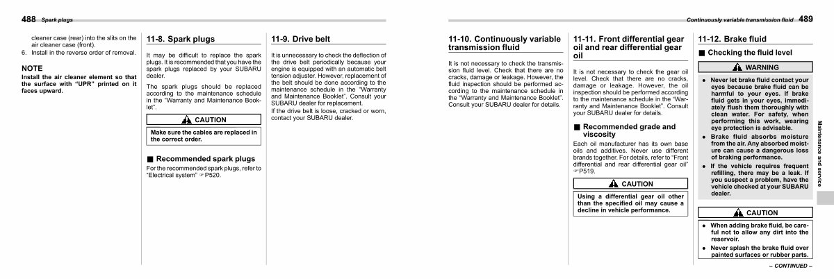 It is not necessary to check the transmission fluid level. Check that there are no cracks, damage or leakage. However, the fluid inspection should be performed according to the maintenance schedule in the“ Warranty and Maintenance Booklet”. Consult your SUBARU dealer for details.