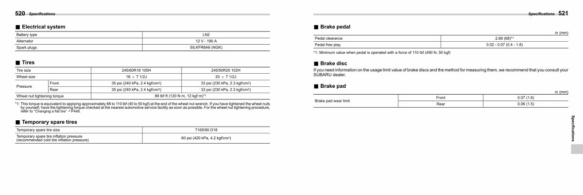 * 1: Minimum value when pedal is operated with a force of 110 lbf( 490 N, 50 kgf)