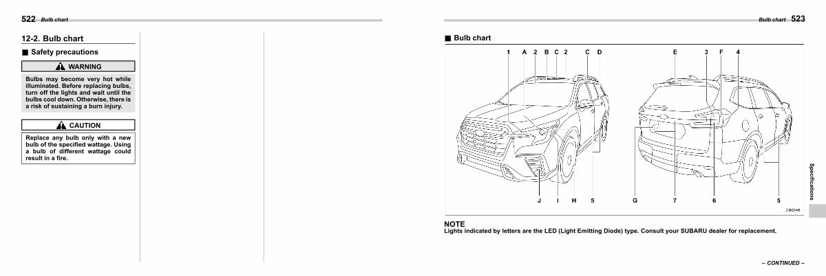 Lights indicated by letters are the LED( Light Emitting Diode) type. Consult your SUBARU dealer for replacement.