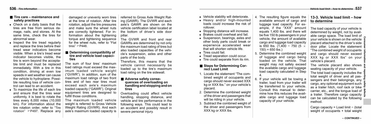 1. Locate the statement“ The combined weight of occupants and cargo should never exceed XXX kg or XXX lbs.” on your vehicle’ s placard.