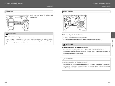 Put the cap on before stowing a bottle. Do not place open bottles in the bottle holders, or glasses and paper cups containing liquid. The contents may