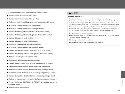 G Témoin indicateur MARCHE et ARRÊT de l'airbag frontal du