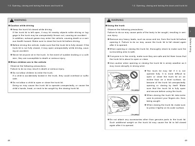 1-2. Opening, closing and locking the doors and trunk lid
