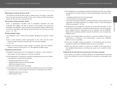 event that a pretensioner is activated, both the driver’s and front passenger’s seatbelt retractor assemblies must be replaced only by SUBARU