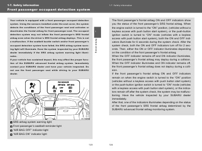 SUBARU advanced frontal airbag monitoring system.