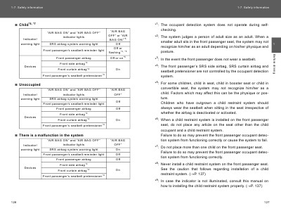 “AIR BAG ON” and “AIR BAG OFF”