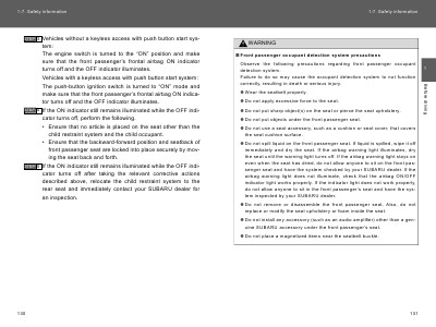 do not allow anyone to sit in the front passenger’s seat and have the system inspected by your SUBARU dealer.