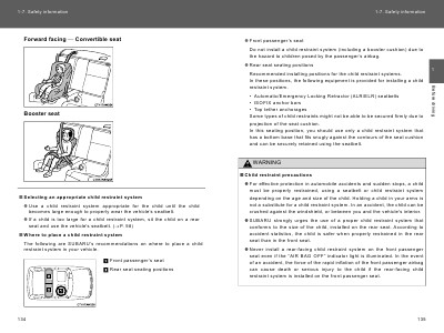The following are SUBARU’s recommendations on where to place a child
