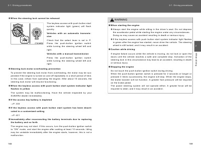 ● Always start the engine while sitting in the driver’s seat. Do not depress