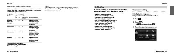 The operability of the unit's functions varies according to the following