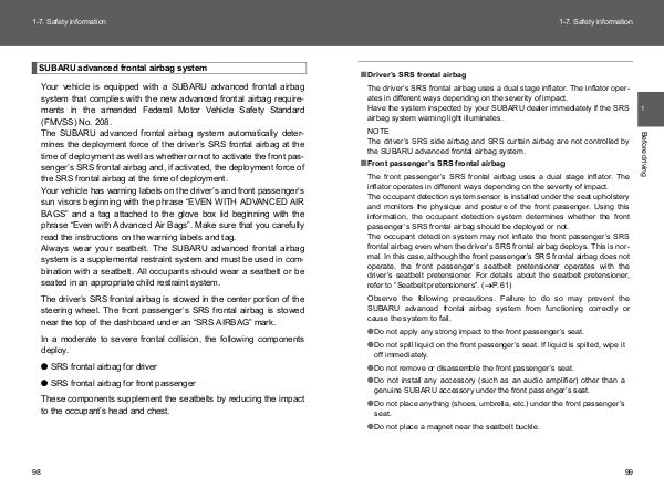 the SUBARU advanced frontal airbag system.