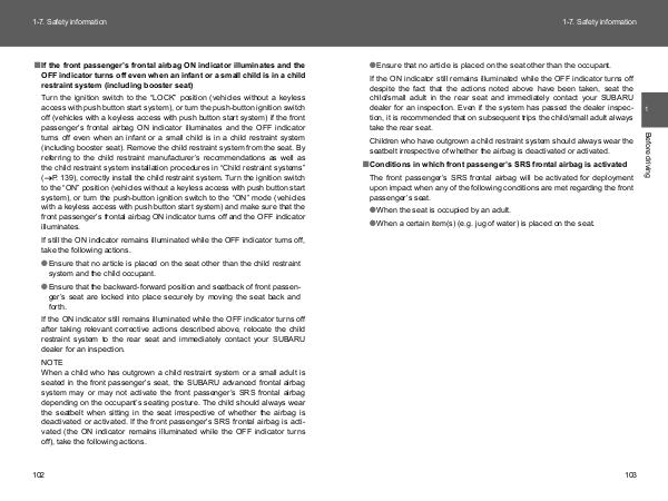seated in the front passenger’s seat, the SUBARU advanced frontal airbag