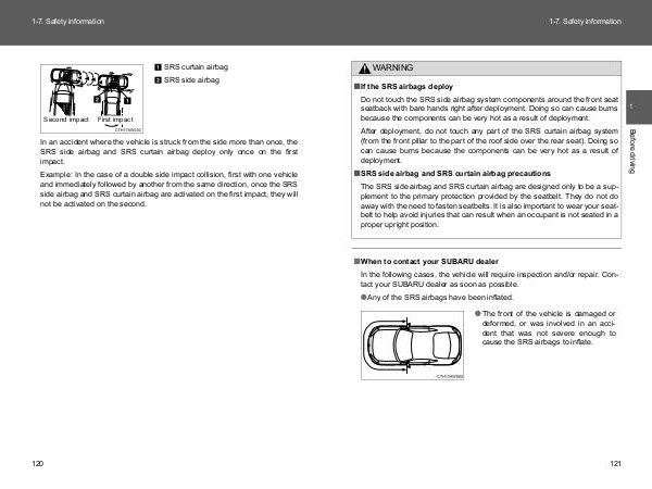 In the following cases, the vehicle will require inspection and/or repair. Contact your SUBARU dealer as soon as possible.
