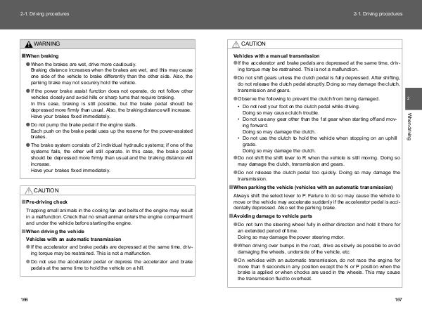 • Do not use any gear other than the 1st gear when starting off and moving forward.