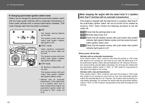 Modes can be changed by pressing the push-button ignition switch