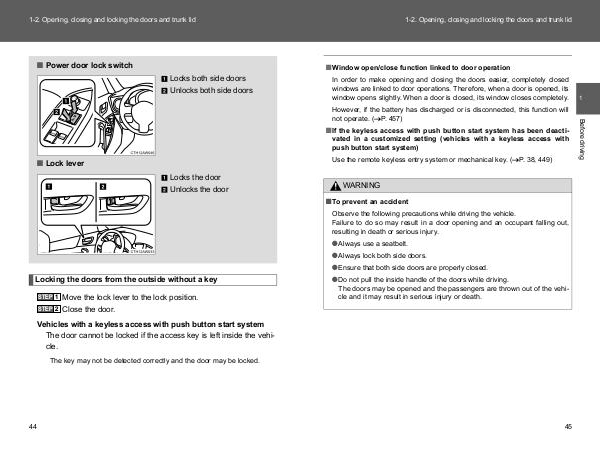 Use the remote keyless entry system or mechanical key. (oP. 38, 449)
